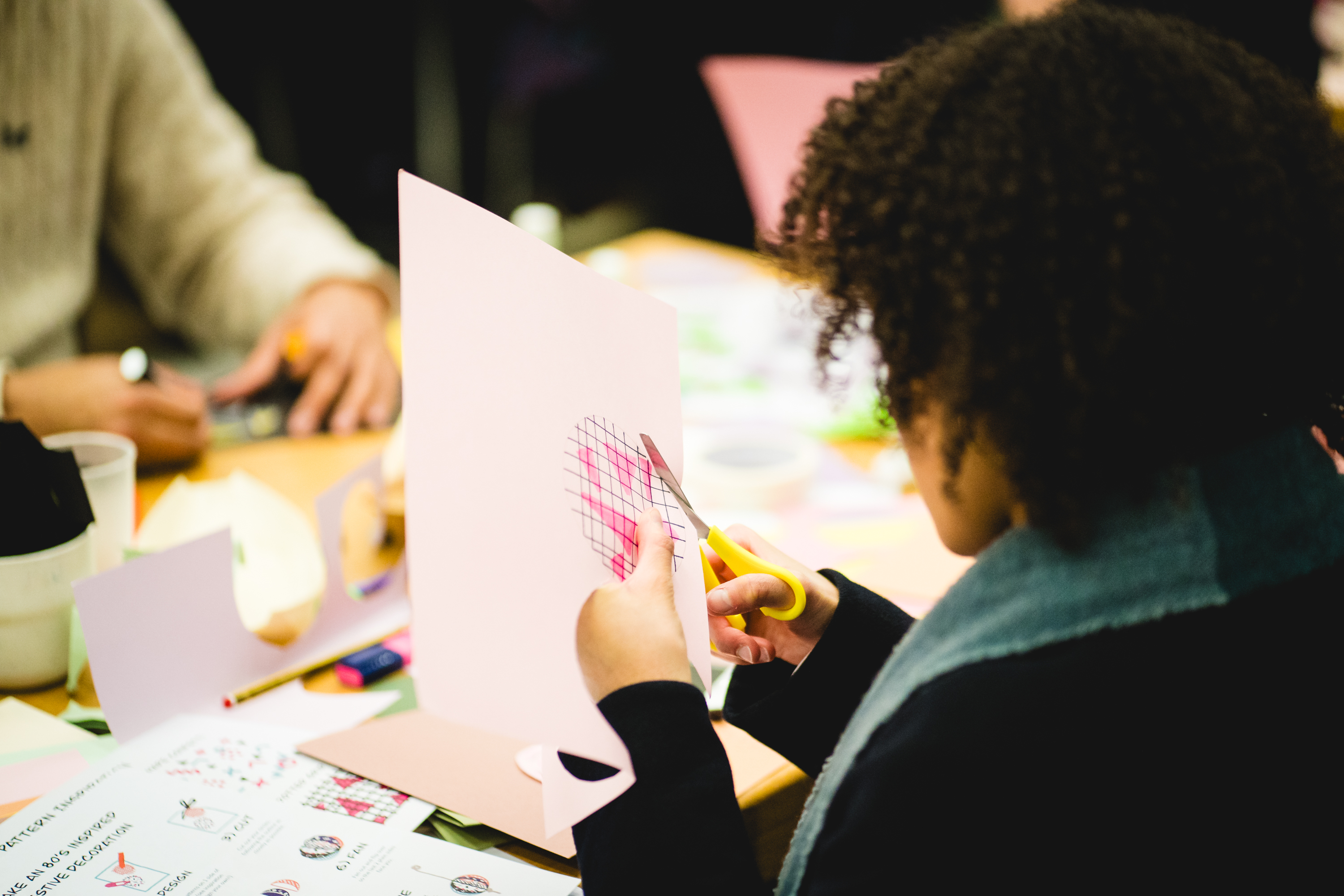In this drop-in workshop, we were making fun 80’s inspired festive decorations. Bold geometric pattern and bright contrasting colours galore!